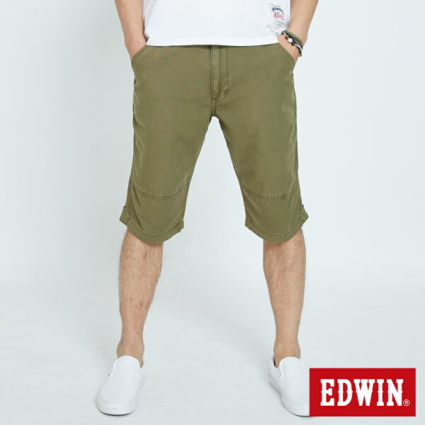 【990元優惠↘】 EDWIN EASY PANT 繡線LOGO休閒5分馬褲-男款 綠
